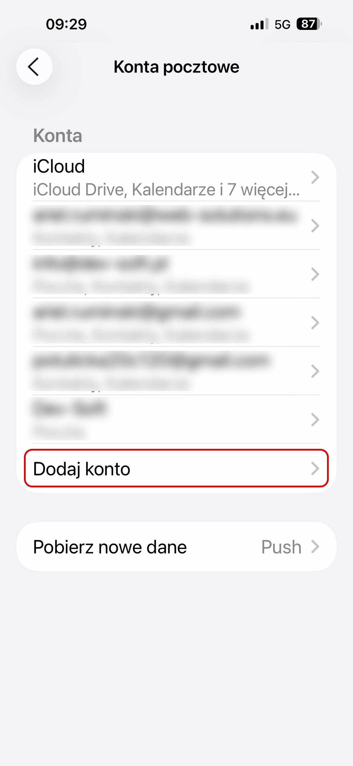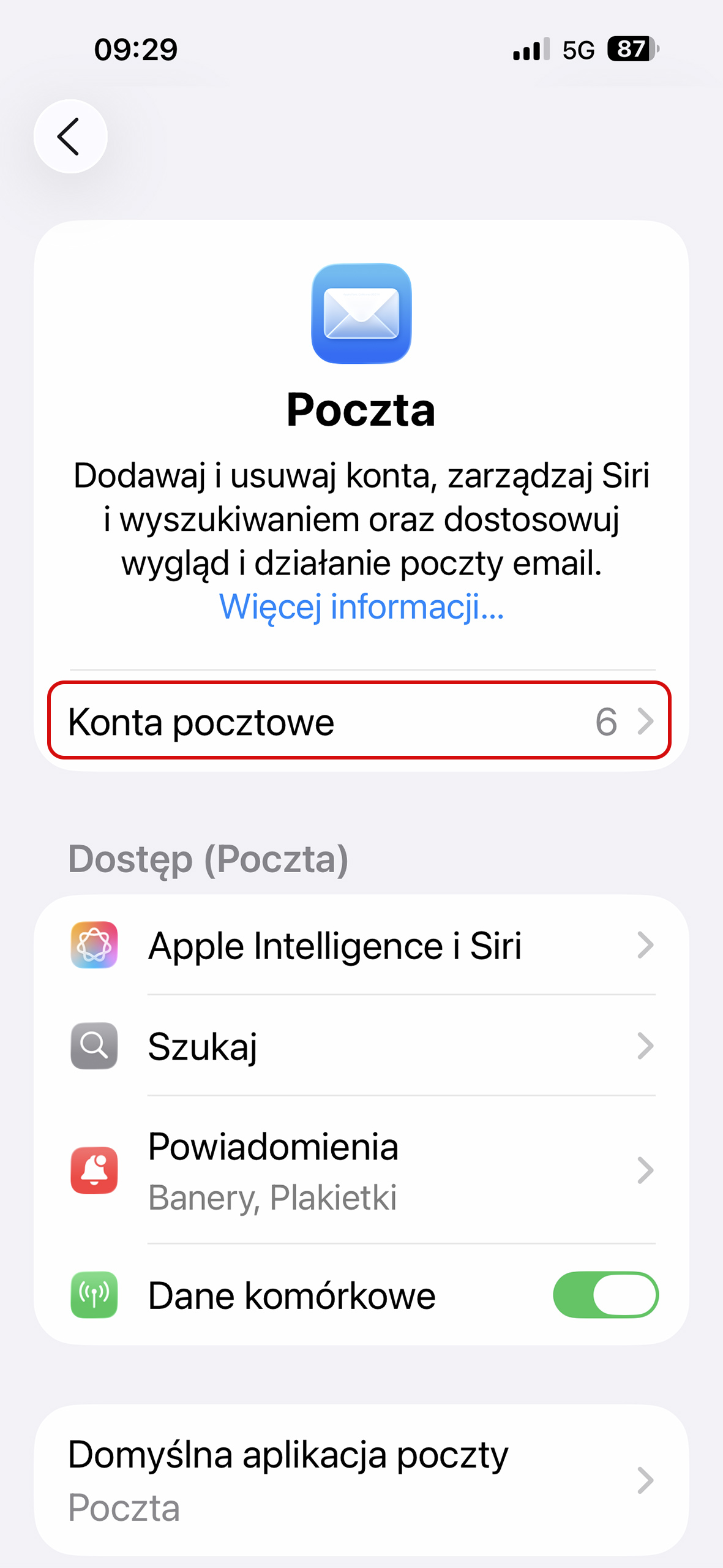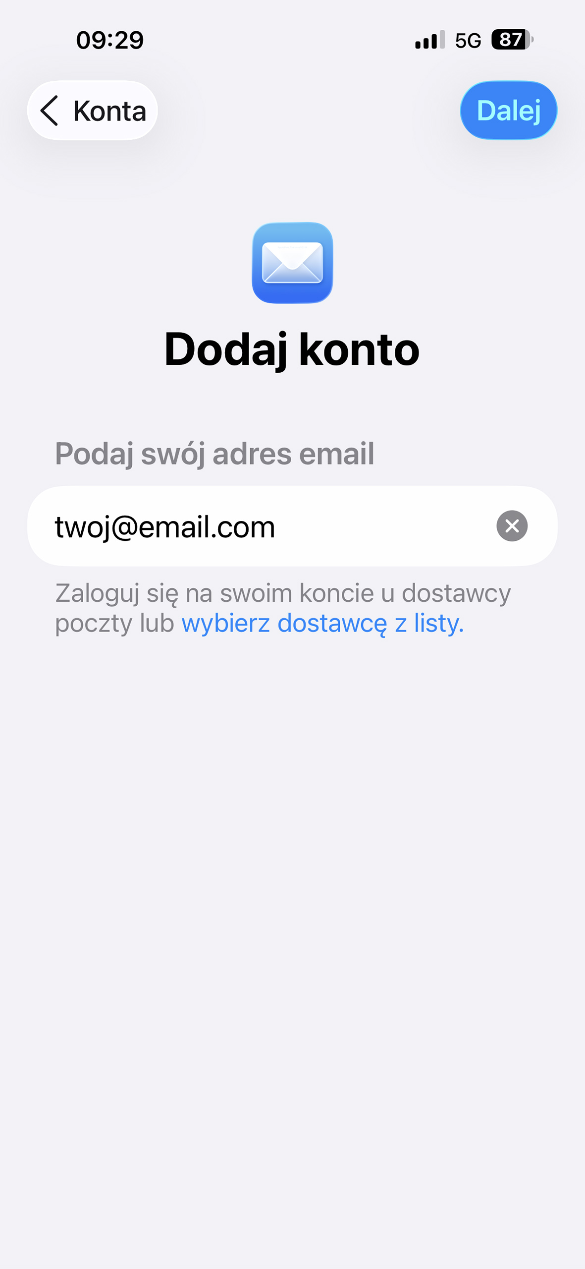 Dodawanie konta pocztowego do iPhona – iOS 26