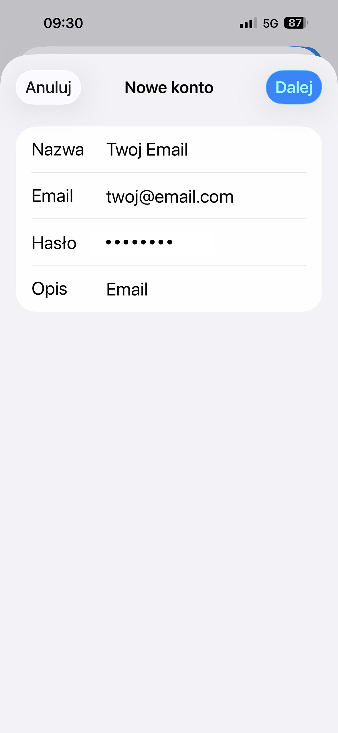 - Dodawanie konta pocztowego do iPhona - iOS 26