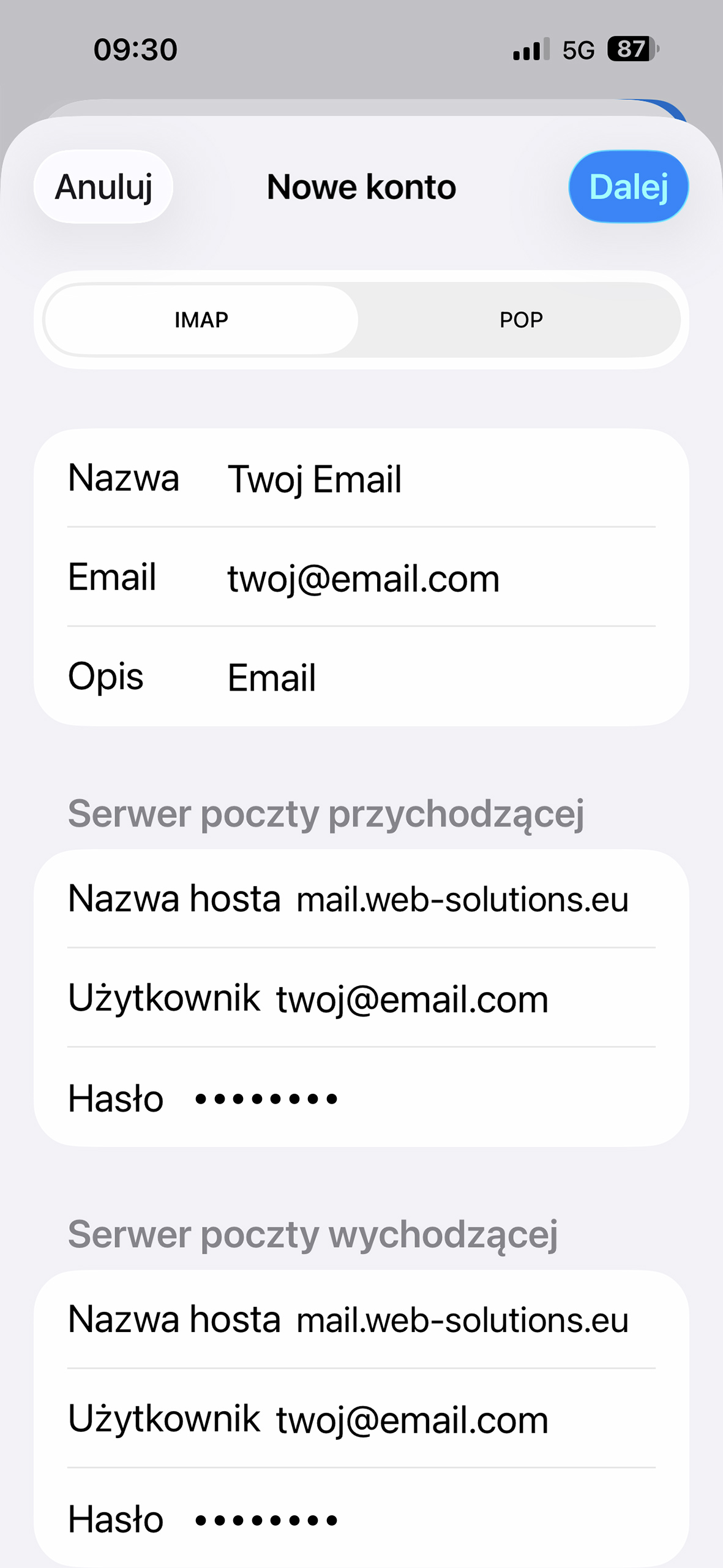 - Nazwa hosta: mail.web-solutions.eu